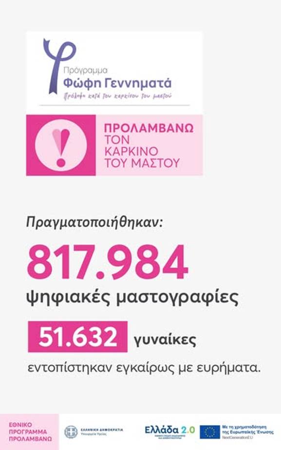 Χίζουμε ένα σύστημα υγείας που δεν περιμένει την ασθένεια να εμφανιστεί αλλά στοχεύει να προλάβει έγκαιρα τη νόσο. Μέσα από το πρώτο οργανωμένο σύστημα πρόληψης που απόκτησε επιτέλους η χώρα μας και τη δωρεάν παροχή προληπτικών εξετάσεων αλλάζουμε κουλτούρα, κερδίζουμε ζωή. Η πρόληψη δεν είναι πολυτέλεια – είναι δικαίωμα. Και πλέον με το «ΠΡΟΛΑΜΒΑΝΩ», είναι πραγματικότητα για όλους τους πολίτες της χώρας.